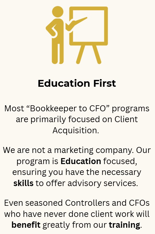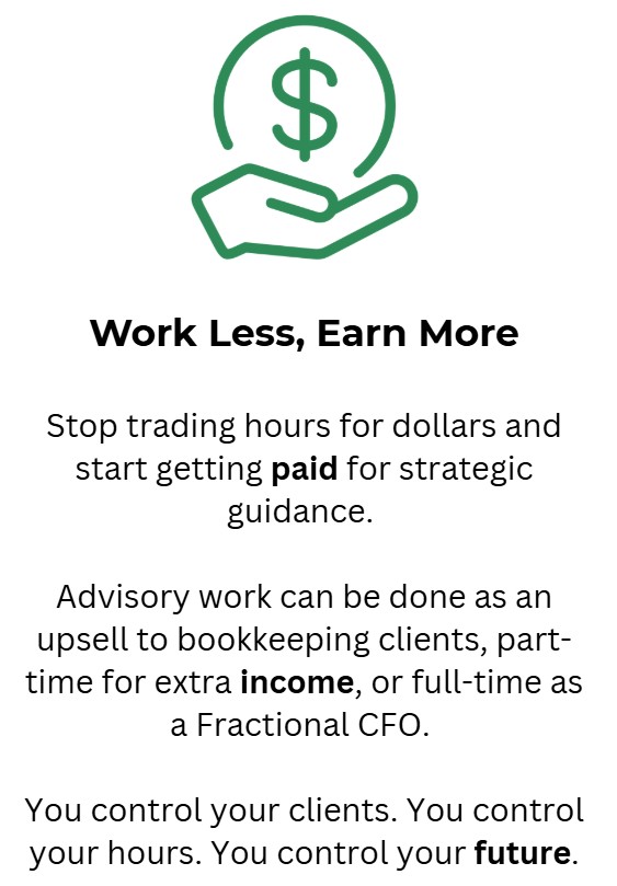 I created this program because I’ve met so many bookkeepers who have tremendous talent, drive, and ambition, and want to learn advisory skills, but have no one to teach them.